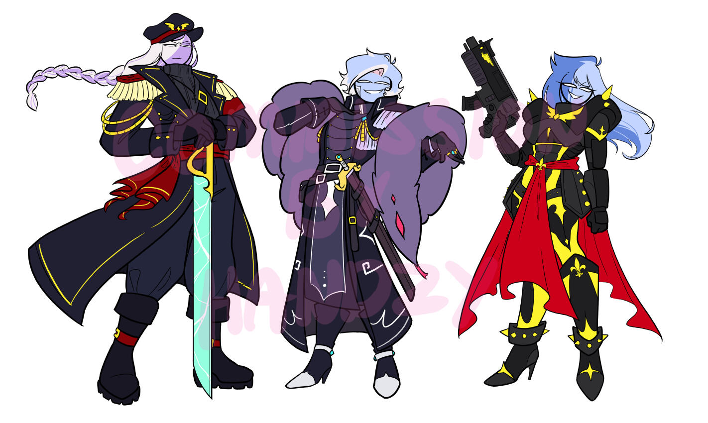 | Humans, Stickpeople, Furries, Inhuman's (Demons, Monsters, etc.), Fanarts, OC Shipart, NSFW (+18), Suggestive Art, Anything I'm comfortable drawing. | Mechanical (Bots, Mech, Vehicles), Hate Art, Political Art, Offensive Stuff, Gore (heavy gore), ProShips, Anything I'm NOT comfortable drawing. |
